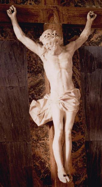 La stessa mano che vent'anni prima modellava il Cristo per l'altare della cappella Foscarini della chiesa di San Stae a Venezia, la ritroviamo qui a Passariano per questo Crocefisso, pur con qualche lieve scarto qualitativo, per una certa rigidità che blocca la figura in un'anonima frontalità e le dimensioni ridotte, forse necessarie a bilanciare l'abbondante decorazione.