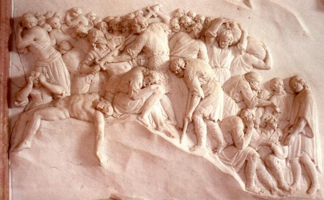 [11] Non si spiegherebbe altrimenti la puntigliosa descrizione delle vicende umane nell'episodio scolpito sulla sinistra della pala dell'Immacolata, o il racconto reso con squisita chiarezza delle tappe dolorose della vicenda umana del Cristo, nella pala dell'Addolorata.